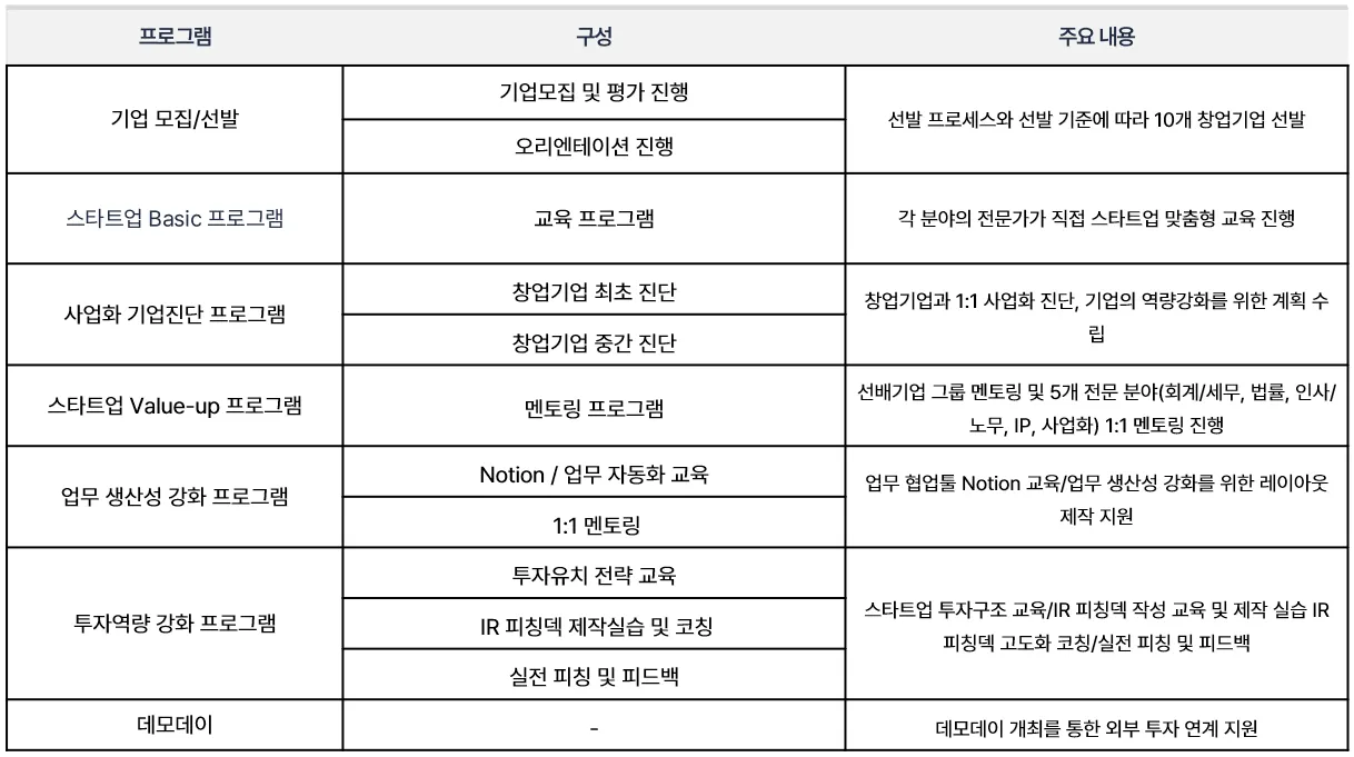 실질적으로 안정적인 사업 기반을 세팅할 수 있는 프로그램으로 구성