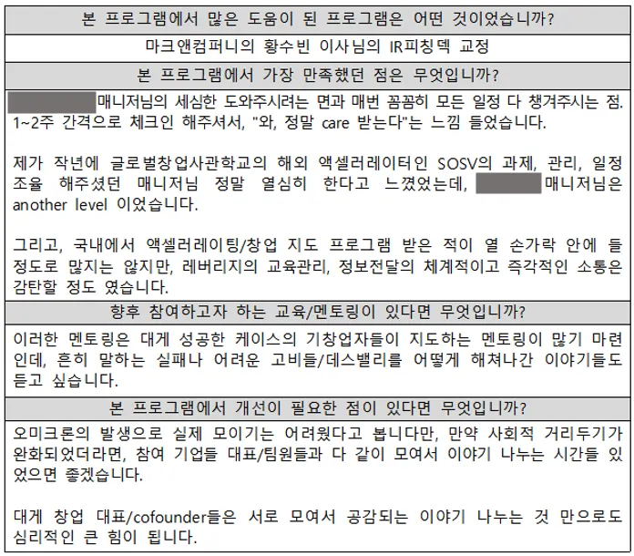 “노션을 통해 궁금한 사항을 언제나 쉽고 빠르게 문의할 수 있어서 제대로 액셀러레이팅을 받고 있다는 느낌이었습니다”