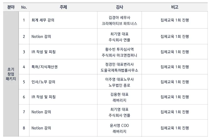 초기창업 기업 대상 집체 교육 및 맞춤형 1:1 멘토링 진행